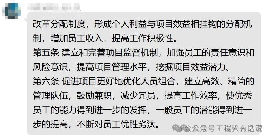 網(wǎng)傳此舉旨在通過“項(xiàng)目模擬股份制”,將員工利益與項(xiàng)目效益深度捆綁,公司方面還表示,這一制度設(shè)計(jì)的初衷是調(diào)動員工積極性和責(zé)任心,強(qiáng)化項(xiàng)目團(tuán)隊(duì)與公司風(fēng)險(xiǎn)共擔(dān)的意識,進(jìn)而促進(jìn)項(xiàng)目降本增效,實(shí)現(xiàn)企業(yè)與個人利益的雙贏。然而,這一初衷良好的改革措施卻在實(shí)際執(zhí)行中引發(fā)了諸多爭議,被指可能存在企業(yè)向員工轉(zhuǎn)嫁風(fēng)險(xiǎn)的嫌疑。