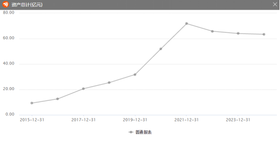 相對于負債情況來看,亞士創能的總資產也并不是很高,2015年亞士創能的總資產為9.33億,2021年總資產達到峰值,為71.82億元,這一年,亞士創能的負債率為77%,而到了2024年底,亞士創能的總資產為63.41億,較2021年下降了11%。從負債和資產對比來看,亞士創能2024年的資總產在縮水,但是其負債卻是在上升,這是一個極度不好的現象。