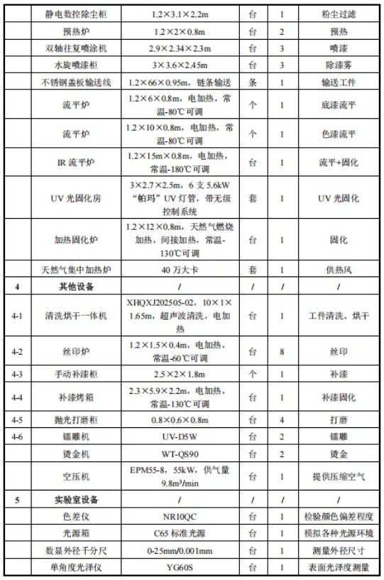 在噴漆工藝方面,該項目采用了UV工藝和PU工藝。這兩種工藝在噴涂底漆或中涂漆時使用相同材料,僅面漆有所不同。具體而言,汽車件和摩配件噴涂UV面漆,家電件則噴涂PU面漆。