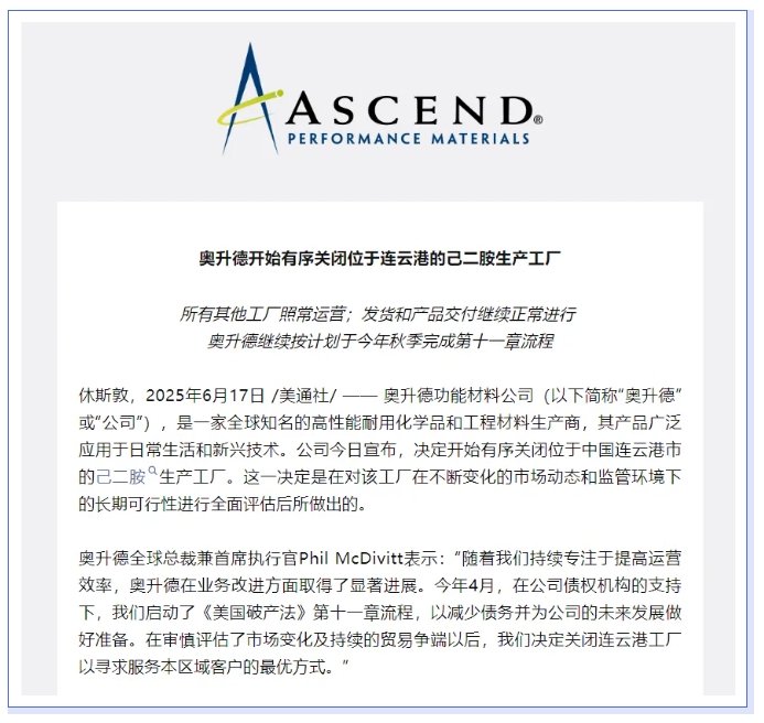 早在2024年2月,奧升德便已關(guān)閉美國(guó)南卡羅來(lái)納州格林伍德的尼龍66聚合物工廠,并計(jì)劃將產(chǎn)能集中至佛羅里達(dá)州彭薩科拉基地;同年4月,又宣布將荷蘭的高性能尼龍66產(chǎn)能遷移至意大利生產(chǎn)基地。這種“關(guān)停轉(zhuǎn)移”策略的核心,在于通過資源整合聚焦成本更低、技術(shù)更優(yōu)的本土產(chǎn)能,以強(qiáng)化全球市場(chǎng)競(jìng)爭(zhēng)力。