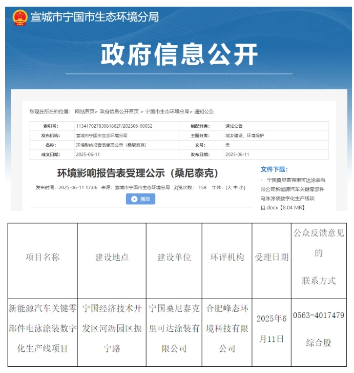 近日,宣城市寧國市生態(tài)環(huán)境分局發(fā)布新能源汽車關(guān)鍵零部件電泳涂裝數(shù)字化生產(chǎn)線項(xiàng)目環(huán)境影響報(bào)告表受理公示。