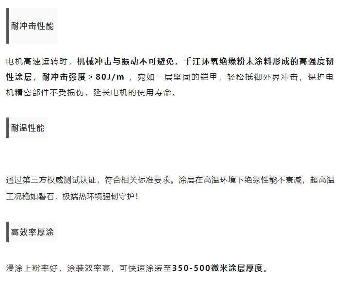 選擇千江電機定子轉子專用環(huán)氧絕緣粉末涂料,為電機注入安全、可靠與持久的澎湃動力——讓每一次轉動,都源于性能的絕對信任!