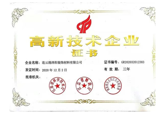 2020年,澤陽(yáng)裝飾成功申請(qǐng)成為江蘇省高新技術(shù)企業(yè),這是澤陽(yáng)裝飾在科技創(chuàng)新道路上的一座重要里程碑,也為公司的未來(lái)發(fā)展注入了新的活力。