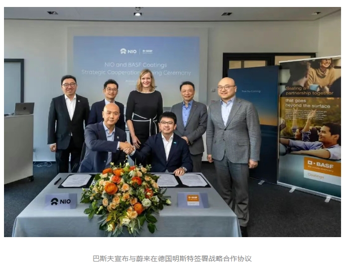 在產能擴張的同時,巴斯夫在市場合作方面也取得了重要突破。今年1月份,巴斯夫高端汽車修補漆品牌 Glasurit® 鸚鵡和 R-M® 被選為寶馬集團在部分市場售后服務網絡的首選涂料品牌。3月7日,巴斯夫宣布與蔚來在德國明斯特簽署戰略合作協議,雙方合作重點聚焦蔚來電動汽車的車身涂料。