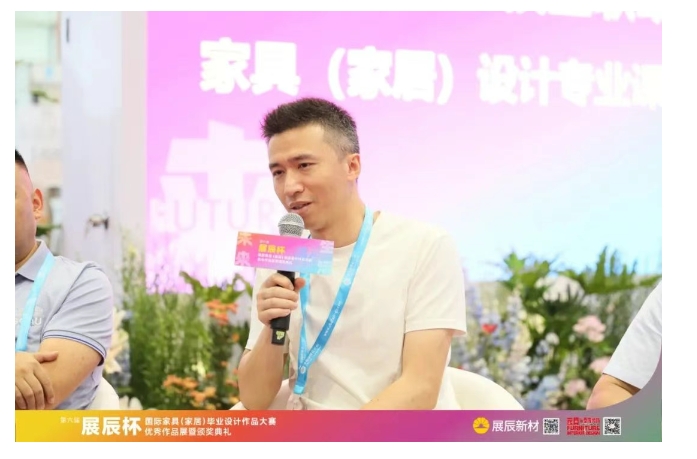 “大美材藝”策展人蘭建平先生盛贊大賽搭建學術與產業的橋梁作用;清華大學美術學院博士生導師劉鐵軍教授、中南林業科技大學家居與藝術設計學院副院長黃艷麗教授高度評價參賽作品對環保理念的深度踐行與文化創新。展辰新材營銷總經理楊求貴先生深刻詮釋了大賽三大趨勢:綠色設計響應“雙碳”目標、智能家居融合科技與人文、文化創新詮釋東方美學。他還重申了展辰新材搭建產學研橋梁的初心。隨后,一場聚焦校企聯動與綠色材料的高規格設計論壇舉行,國務院政府特殊津貼專家彭亮教授、南京林業大學家居與工業設計學院院長徐偉教授等眾多高校專家深度對話,碰撞智慧火花。