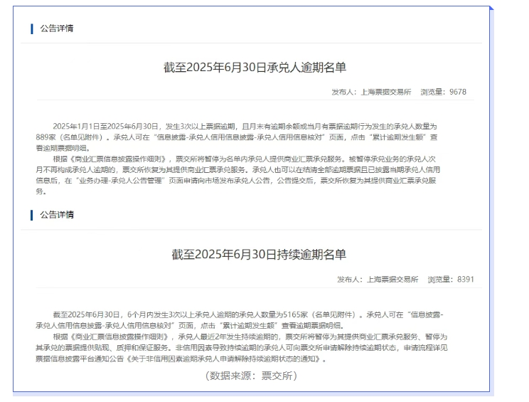 上海票交所公布的名單顯示,截至2025年6月30日,承兌人逾期名單和持續(xù)逾期名單涉及77家發(fā)債城投,票據(jù)總逾期余額達30.71億元。