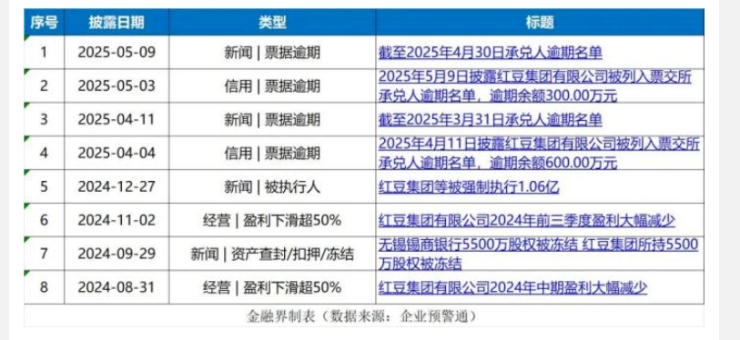 紡織行業(yè),紅豆集團有限公司因連續(xù) 6個月內發(fā)生3次以上票據(jù)逾期,且存在月末逾期余額。票據(jù)逾期對企業(yè)融資鏈的負面影響具有傳導性,紅豆集團持有的無錫錫商銀行5500萬股權已于2024年9月被上海金融法院凍結,凍結股權僅占銀行總股本的2.75%。