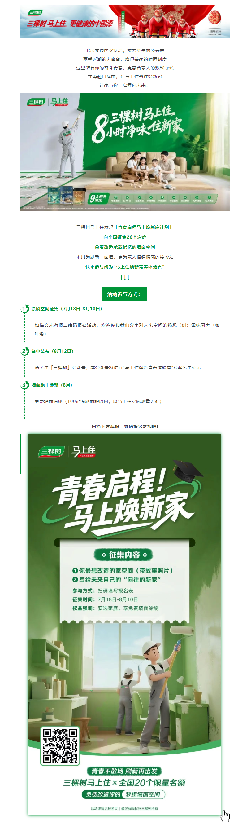 免費涂刷!三棵樹邀你成為“馬上住煥新青春體驗官”