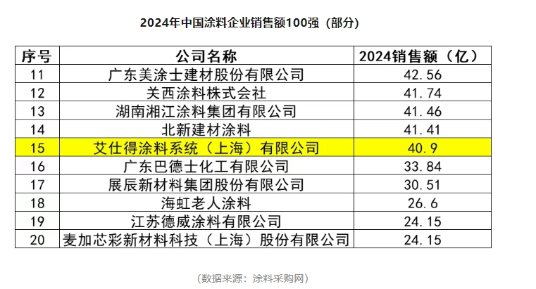 近期,作為涂料領域極具專業性與權威性的新媒體服務平臺,涂料采購網發布的2024涂料行業“最賺錢”的100家企業排行榜引發行業內外高度關注,艾仕得涂料系統(上海)有限公司位列第15名。這背后又隱藏著怎樣的中國市場故事呢?