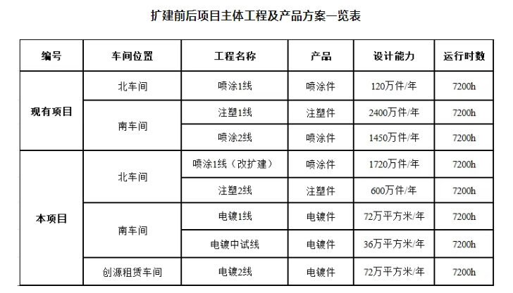 2019年,為了滿足客戶需求,穩定和發展公司業務,考慮到新廠區未完全建設完成,南通柏源汽車零部件有限公司繼續租賃南通創源電化學科技有限公司的閑置車間對現有項目進行擴建,擴建至年產2400萬件汽車內外飾注塑件的生產能力,該項目于2019年6月4日取得了環評批復,批復文號為皋開行審環表復[2019]15號,擴建年產5000萬件汽車內外飾注塑件項目(僅投運一階段:年噴涂注塑件120萬件)及年產2400萬件汽車內外飾注塑件改擴建項目已于2019年8月22日完成自主驗收。
