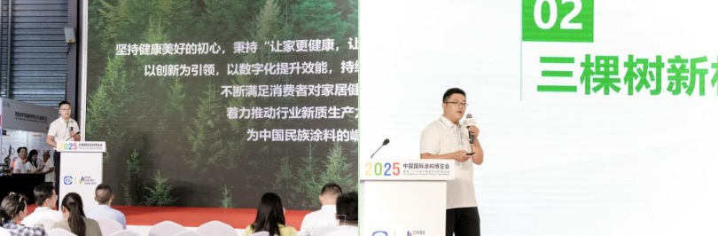 三棵樹副總裁崔景燾發表主旨演講,明確企業核心發展邏輯與行業責任。他指出,三棵樹始終以“極致健康、極致應用、極致性價比”為研發導向,已打造多款全國銷量領先的健康涂料產品,夯實“更健康的中國漆”品牌根基。