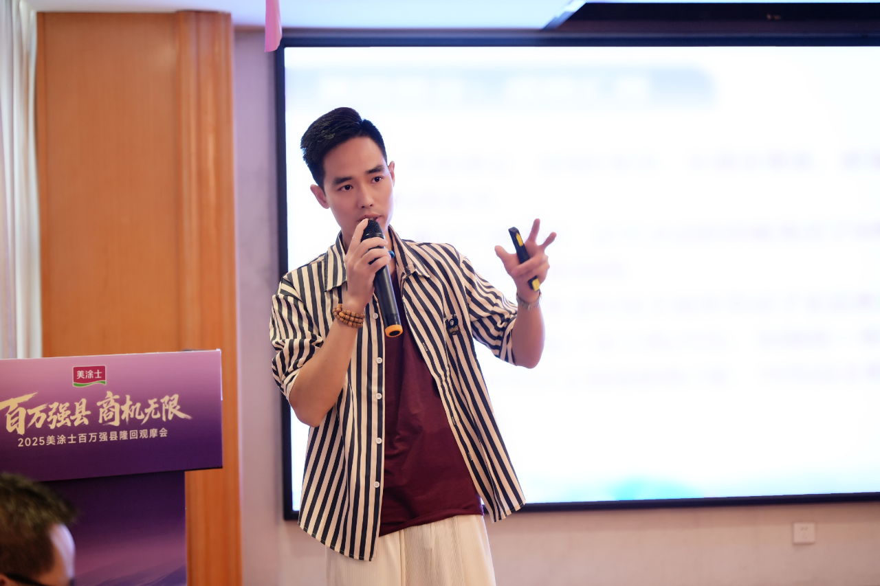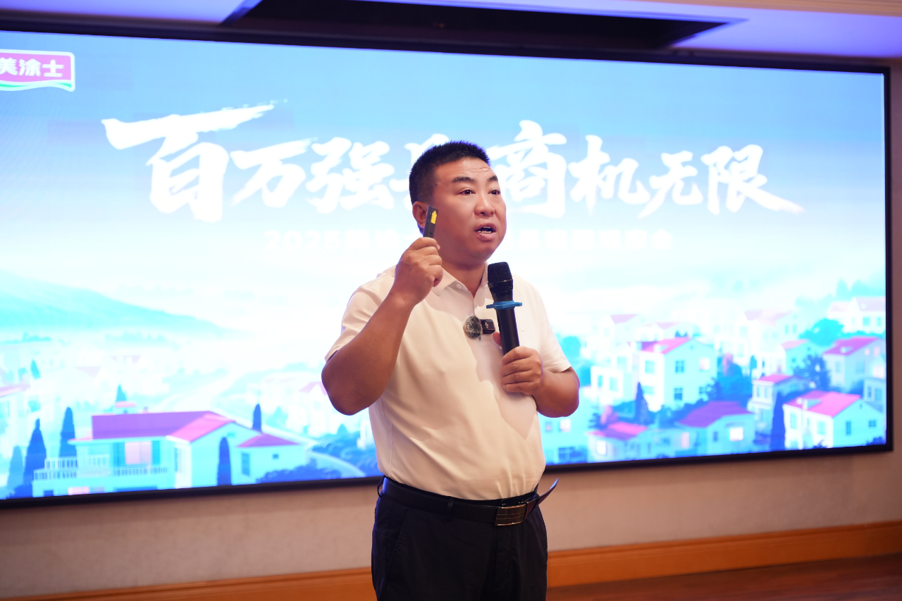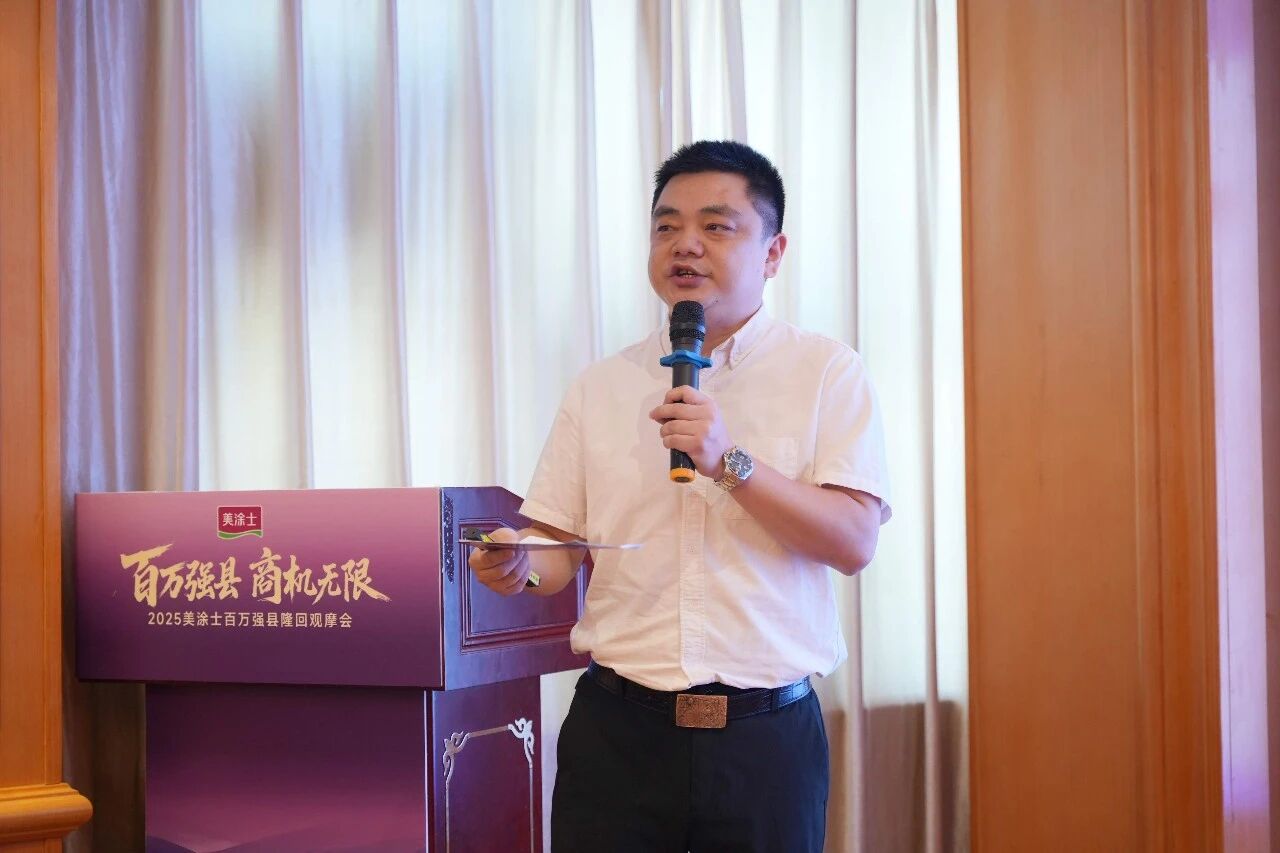 決勝縣域市場(chǎng),打造百萬強(qiáng)商。會(huì)上,美涂士集團(tuán)副總裁楊繼軍基于對(duì)縣域市場(chǎng)前景與消費(fèi)特征的深刻洞察,帶來《百萬強(qiáng)縣戰(zhàn)略解碼》主題分享,首次推出的縣域市場(chǎng)經(jīng)營(yíng)“天龍八步”成功秘笈,不僅為參會(huì)人員指明了縣域共贏的戰(zhàn)略方針與行動(dòng)路徑,這套經(jīng)過市場(chǎng)驗(yàn)證的打法,也將為各合作伙伴開拓縣域市場(chǎng),提供了可復(fù)制的經(jīng)驗(yàn)范本。