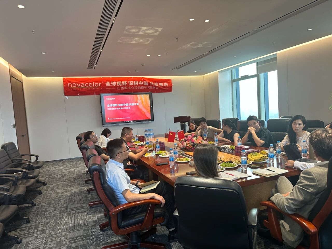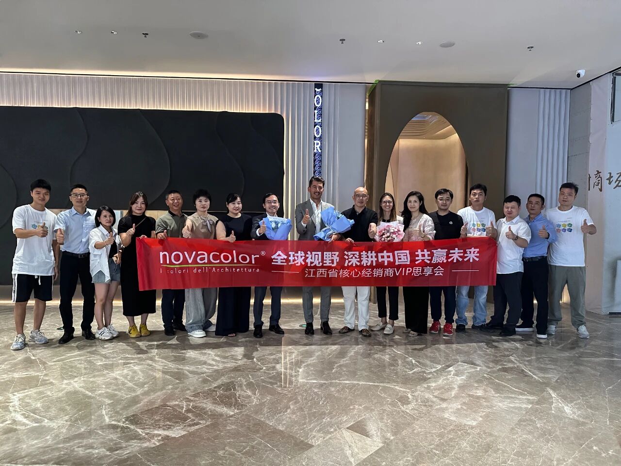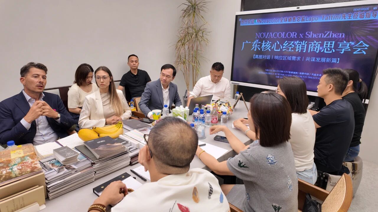 來自廣東及江西地區的優秀經銷商代表齊聚一堂,與Novacolor全球銷售總監Lapo Tattini先生、中國區負責人及團隊共商發展大計,圍繞市場戰略、產品創新與渠道發展展開深度對話,進一步夯實品牌與經銷商之間的合作紐帶。