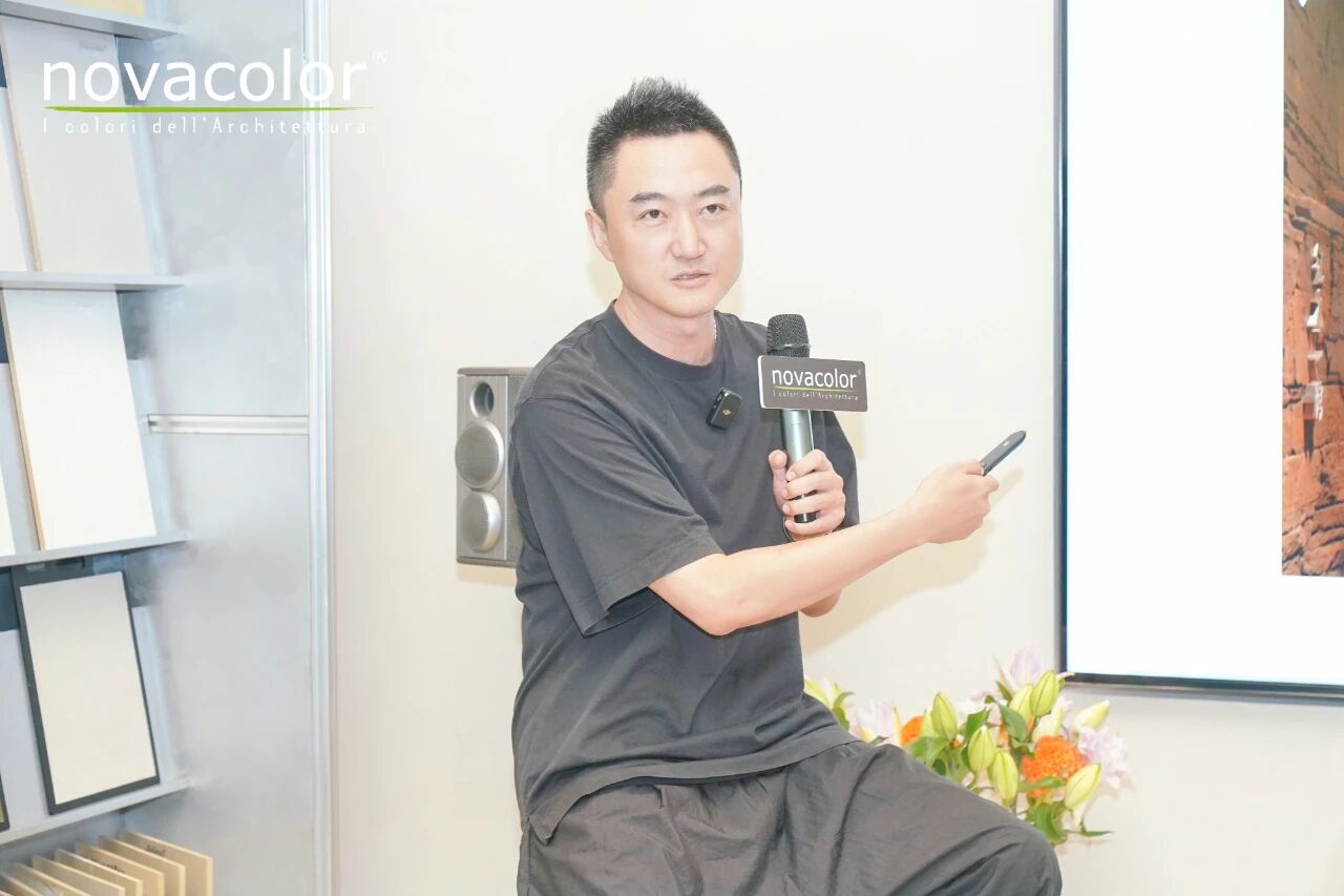 在演講中,他還分享了與Novacolor品牌的結(jié)緣故事,坦言深受品牌“為建筑、為藝術(shù)、為創(chuàng)造力”的核心理念所吸引。