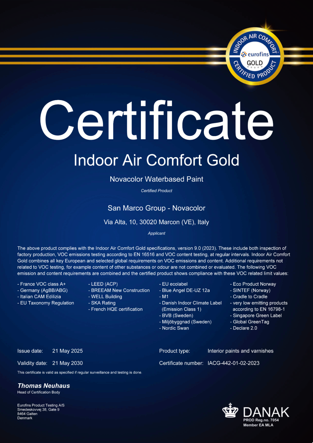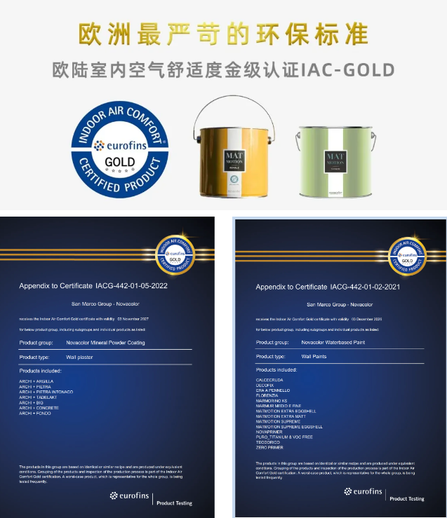 未來,Novacolor將以IAC-Gold認證為基石,憑借年審機制持續自我超越,致力于為廣大消費者提供更環保、更耐久、更富藝術感的墻面解決方案,引領藝術涂料行業邁向更高標準。