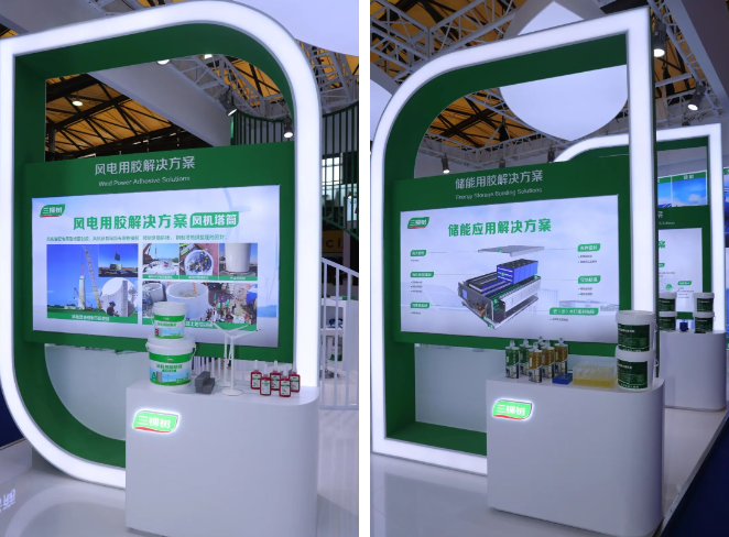 三棵樹前瞻性布局新能源賽道,依托其國(guó)家級(jí)研發(fā)平臺(tái)與創(chuàng)新基因,推出新能源領(lǐng)域設(shè)備及設(shè)施的高性能涂料與膠粘劑系列解決方案,構(gòu)建工業(yè)涂料、工業(yè)膠、汽車新材料等產(chǎn)品矩陣。在展會(huì)現(xiàn)場(chǎng),三棵樹工業(yè)膠展示其風(fēng)電及儲(chǔ)能應(yīng)用解決方案。
