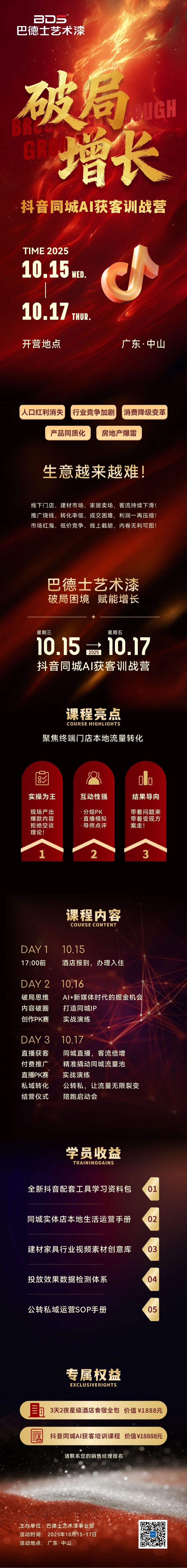 巴德士藝術漆「抖音同城AI獲客」訓戰營,帶你破局增長!