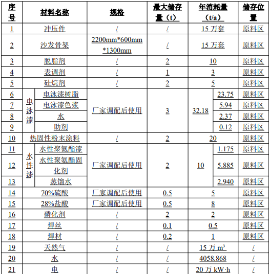 電泳漆用量核算:項(xiàng)目沙發(fā)骨架需進(jìn)行電泳工藝,根據(jù)建設(shè)單位資料, 單件工件電泳面積約為4m²,沙發(fā)骨架年用量為15萬套,總電泳面積為60 萬m²,約有1%的不合格工件重新電泳涂裝,每個(gè)工件厚度為15μm使用電泳漆配比為水:樹脂:色漿:助劑=10:100:25:0.5(質(zhì)量比),