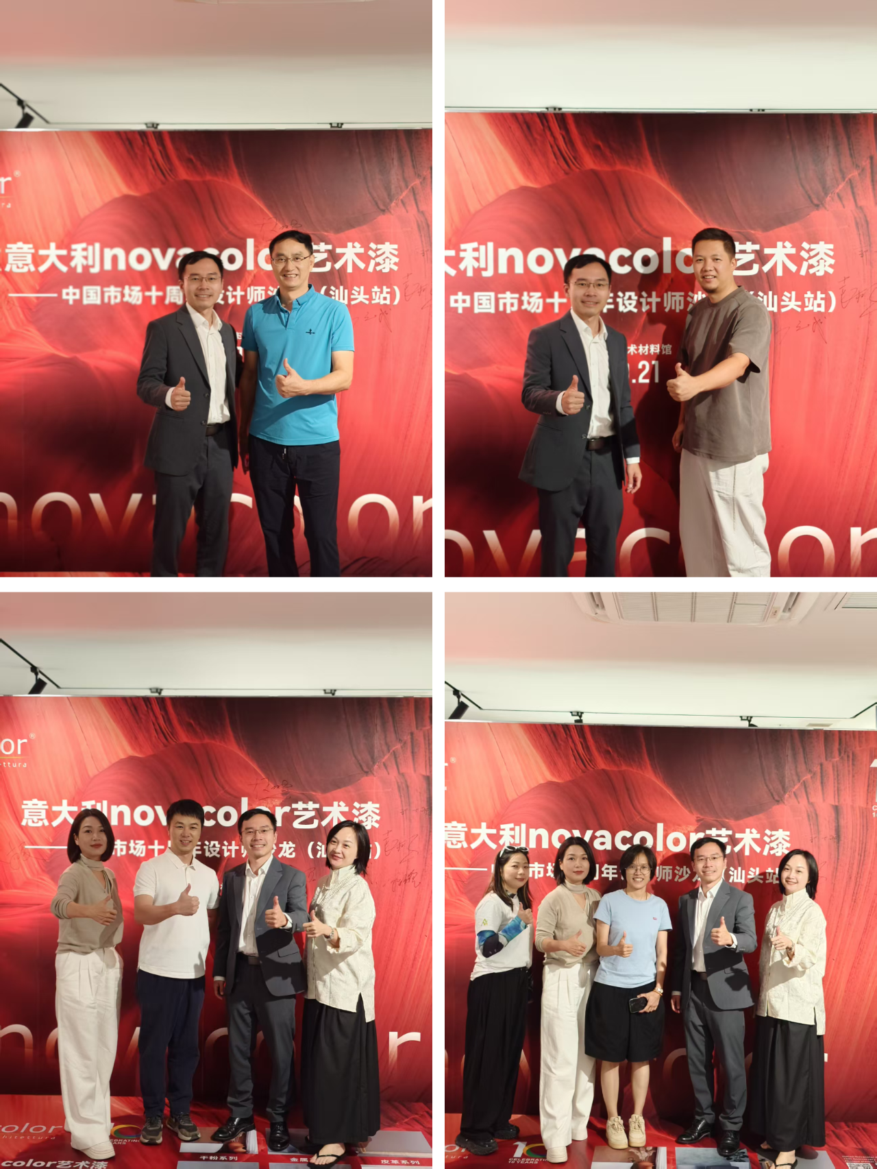 汕頭,是Novacolor中國(guó)十周年巡禮的一站,卻也是我們深耕中國(guó)市場(chǎng)理念的集中縮影。我們的使命,從未改變:作為意大利頂級(jí)藝術(shù)漆的使者,我們引入的不僅是產(chǎn)品,更是一種關(guān)于生活美學(xué)的標(biāo)準(zhǔn)。我們的模式,始終進(jìn)化:通過(guò)賦能像諾可藝術(shù)材料館這樣的卓越伙伴,我們共同構(gòu)建了一個(gè) “品牌-經(jīng)銷商-設(shè)計(jì)師-施工方” 的價(jià)值共生體,讓每一份創(chuàng)意都能找到完美落地的土壤。