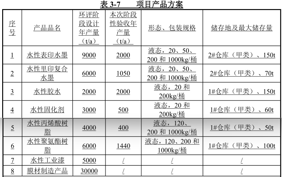 項目名稱:年產水墨及水性膠水、水性工業漆22000噸、水性固化劑3000噸、水性樹脂10000噸、膜材30000噸建設項目階段性驗收(新建)