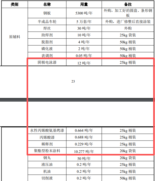 建設1條噴裝線,位于生產車間北2跨,設置1條脫脂磷化電泳及烘干生產線,2條噴塑線,1座噴漆房及1條噴塑、噴漆烘干線,年涂裝處理20萬套車輪。