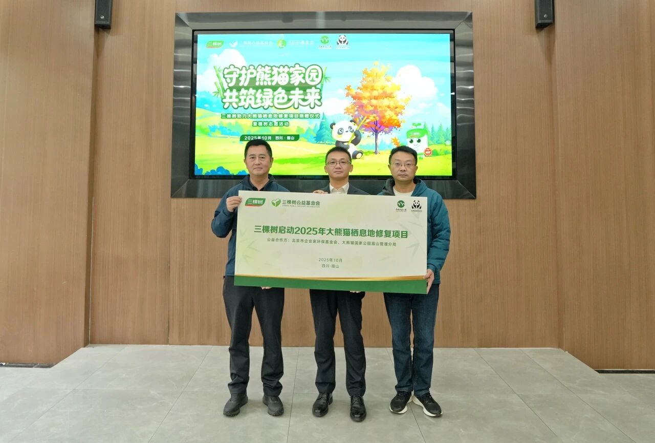 三棵樹向SEE基金會(huì)、大熊貓國家公園眉山管理分局進(jìn)行了項(xiàng)目捐贈(zèng),正式開啟了2025年大熊貓棲息地修復(fù)計(jì)劃。三棵樹四川工廠總經(jīng)理王德兵表示,三棵樹始終秉承“健康、自然、美好”的品牌理念,將保護(hù)生態(tài)環(huán)境視為企業(yè)成長的根基與對未來的責(zé)任。多年來,企業(yè)積極投身各類環(huán)保行動(dòng),三棵樹用實(shí)際行動(dòng)守護(hù)綠水青山,建設(shè)美麗家園。