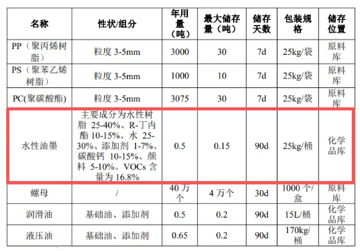 根據上表可知,水性油墨用量為0.494t/a,考慮到損耗等原因,本項目水性油墨用量取0.5t/a。