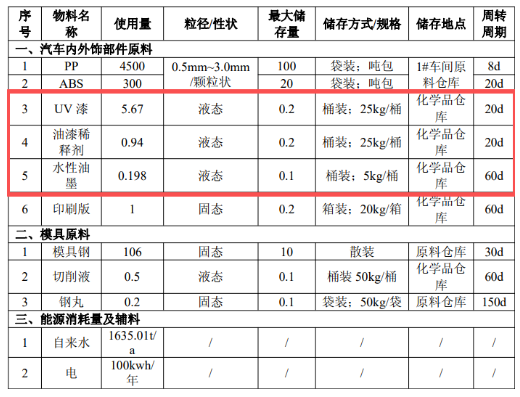 水性油墨:項目油墨為水性油墨;主要成分為水性丙烯酸樹脂70%;二氧化硅5%;醇醚類成膜助劑6%;水性聚氨酯分散體3%;流平劑1%;水 15%。