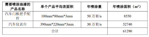 則配比好的油漆密度為(6+1)/(6/1..25+1/0.86)=1.18g/cm3.揮發份含量為(6*15%+1*100%)/(6+1)=27%,揮發份量為1.04*40%=318g/L,滿足《低揮發性有機化合物含量涂料產品技術要求》中表4輻射固化型金屬基材與塑料基材噴涂VOC含量的限量值要求(350g/L)以及《車輛涂料中有害物質限量》(GB24409-2020)中輻射固化型涂料非水性噴涂VOC含量的限量值要求(≤550g/L)。