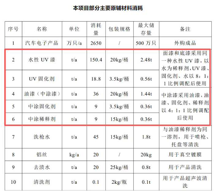 ②油漆:本項(xiàng)目油漆、稀釋、固化劑調(diào)配完成后即用狀態(tài)下 VOCs 含量為 38.35%, 油漆調(diào)配后密度約為 1.047g/cm3.則油漆中 VOCs 的含量約為 401g/L,符合《低 揮發(fā)性有機(jī)化合物含量涂料產(chǎn)品技術(shù)要求》(GB/T 38597-2020)中表 2 中溶劑 型汽車原廠涂料(乘用車)雙組分清漆的限值要求(420g/L)、《工業(yè)防護(hù)涂料 中有害物質(zhì)限量》(GB 30981-2020)中表 2 溶劑型電子電器涂料底漆 VOCs 含 量限值要求(600g/L)。