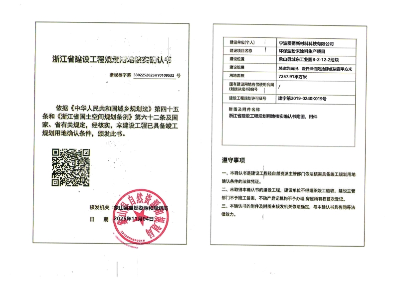 愛甬新材料環保型粉末涂料生產項目