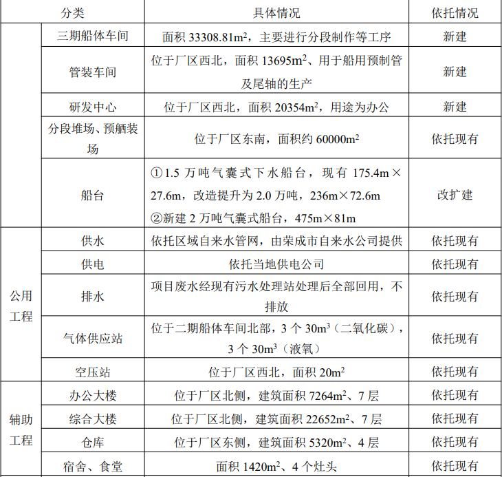 黃海造船有限公司擬投資48660萬元建設(shè)黃海造船有限公司船舶制造項目,項目位于榮成市石島管理區(qū)桃園街道青木寨村南,中心點位于122.469403°E、36.930211°N,現(xiàn)有廠區(qū)占地面積為259495m2.本項目新增用地面積為 41858m2.項目新增員工300人,項目新建2萬噸氣囊船臺、改造提升2萬噸氣囊船臺、新建三期船體車間、分段倉儲設(shè)施、研發(fā)中心、管裝車間;項目造船產(chǎn)能為7.98萬噸/年(47.8萬載重噸),利用榮成市神飛船舶制造有限公司置換13 萬噸/年(71萬載重噸)造船產(chǎn)能中的8萬噸/年造船產(chǎn)能(47.8萬載重噸),不新增造船產(chǎn)能。