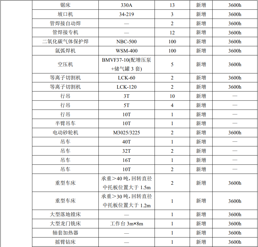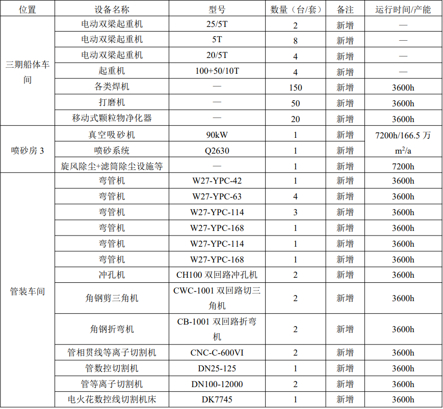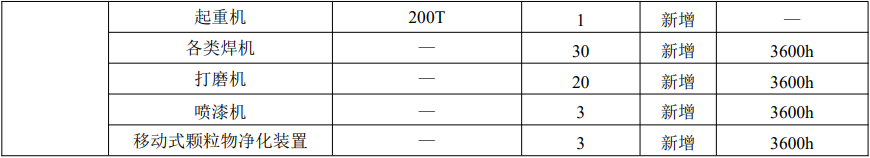 擴建項目主要生產(chǎn)設(shè)備配置一覽表