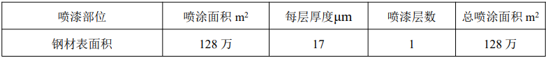 項目入廠鋼材全部需要進行預(yù)處理噴漆,一遍水性漆后進行烘干,總噴漆面積為128 萬平方米,噴漆厚度為17um。