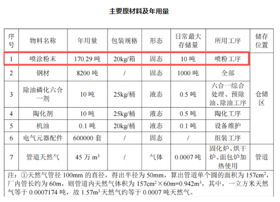 粉末涂料的 VOCs含量符合《低揮發性有機化合物含量涂料產品技術要求》GB/T 38597-2020)“表3無溶劑涂料中 VOC 含量的要求”((<60 gL),屬于低 VOCs 含量物料。同時根據《低揮發性有機化合物含量涂料產品技術要求》(GB/T38597-2020)中81粉末涂料、無機建筑涂料(含建筑無機粉體涂裝材料)、建筑用有機粉體涂料產品中 VOC 含量通常很少,屬于低揮發性有機化合物含量涂料產品,綜上本項目所使用的粉末涂料屬于低揮發性有機化合物涂料。