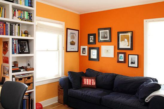 對于冬暖夏涼的朝南居室,可以選擇橙色粉刷墻面。橙色能夠促進(jìn)食欲,這也是一些快餐店選擇橙色作為裝修色調(diào)的原因。