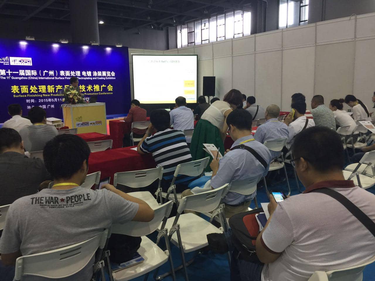 當天下午,第三屆國際表面處理發展高峰論壇在展館舉行,新加坡表面處理協會執行委員StewartJhemsley、美國表面處理協會國際部主席Steven Burling、印度表面保護涂層協會主席Anand Khanna、MFAI協會前任副主席Jagmohan Singh、中表協清潔生產指導工作委員會主任樊景星、中表協涂裝分會副理事長王一建、廣東省電鍍行業協會會長趙國鵬、重慶表面工程協會會長胡國輝以主講嘉賓身份出席會議。展會現場由芬蘭Carbodeon、賽德克及廣東沃杰森等企業主講的新產品、新技術發布會吸引大量觀眾前往聆聽。12日還將舉行由廣汽研究院和展會主辦方合作的“2015汽車表面防腐工藝研討會”,必將吸引更多人的關注。