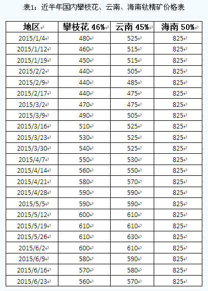 5、海南地區(qū)鈦精礦價(jià)格受外礦影響較大,因外礦價(jià)格仍處于低位持穩(wěn)運(yùn)行,所以海南地區(qū)鈦精礦價(jià)格上半年較為平穩(wěn),海南地區(qū)50%鈦精礦(低磷)主流報(bào)價(jià)為800-850元/噸,實(shí)際成交價(jià)750-800元/噸。
