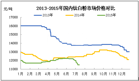 【中國(guó)涂料采購(gòu)網(wǎng)】自6月份以來(lái),國(guó)內(nèi)鈦白粉市場(chǎng)價(jià)格走勢(shì)疲軟,暗降現(xiàn)象較為普遍,而進(jìn)入7月份,下跌勢(shì)頭愈發(fā)洶涌,尤其自上周以來(lái)金紅石型鈦白粉鈦白粉價(jià)格連續(xù)破位下跌,市場(chǎng)人士不禁感嘆,地球人已經(jīng)無(wú)法阻止鈦白粉下跌了。那么,究竟為何鈦白粉會(huì)如此深跌,又會(huì)跌倒何時(shí)呢?