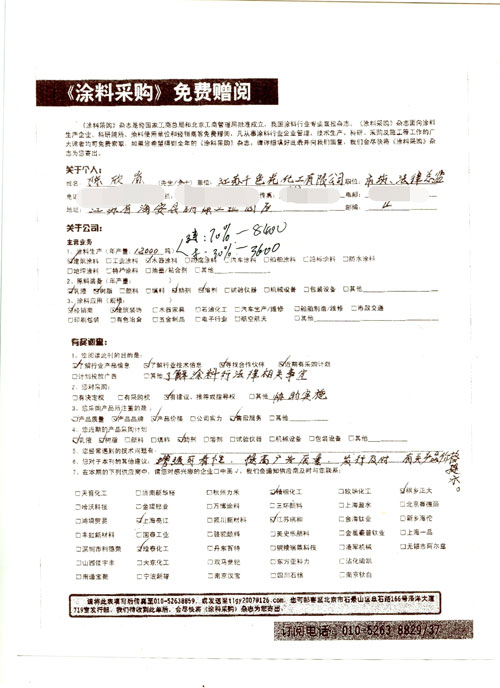 《涂料采購》回執(zhí)單:千色光化工