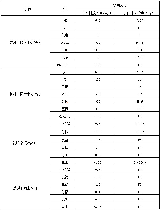 通過上述的環保治理措施,公司的污水、廢氣經處理后達到了環評批復的執行排放標準,廠界噪聲也達到相應的環保要求。三棵樹各環保設施均能穩定運行,設施同步運轉率都能達到100%。