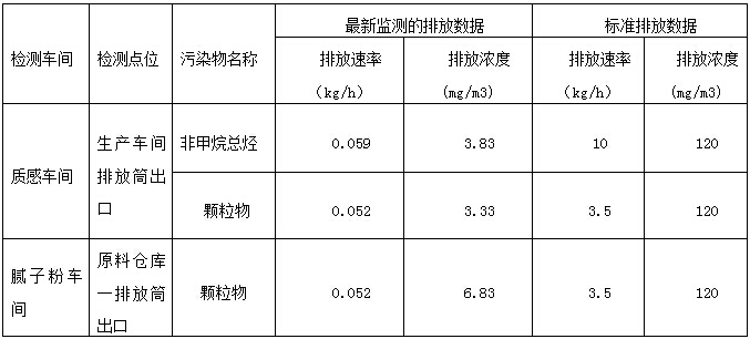 (1)廢氣排放的主要污染物包括:非甲烷總烴、顆粒物。