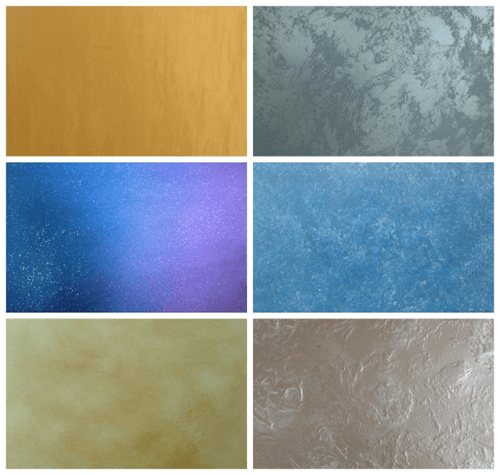 (從左到右,從上到下分別為傾城之虹、流金幻彩、夢幻威尼斯、羅馬經(jīng)典、流光溢彩和巖紋藝術(shù)漆)