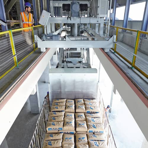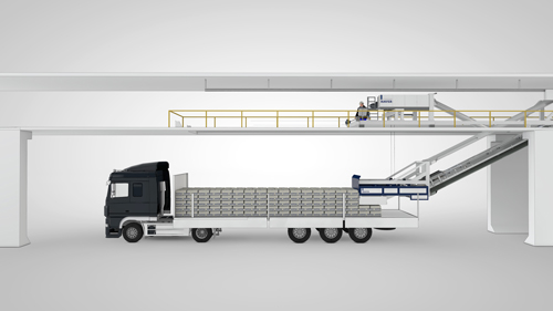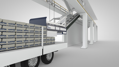 HAVER SpeedRoad將來自包裝機輸送帶上的袋子組成一層樣式并把它們裝卸到卡車上。因此,可以確保卡車上每一層跺型都很完美。一旦卡車裝載完畢,裝車機即刻切換到等待模式,直到下一輛卡車到達。