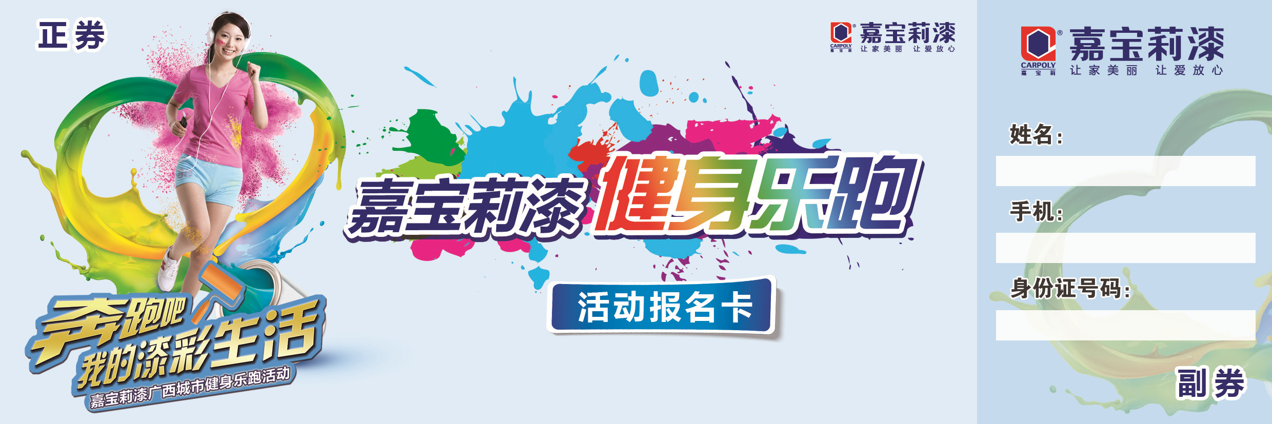 注:在店面報名時須直接填寫報名卡,領取彩跑服裝等物料。微信或電話報名成功的,請活動當天8點鐘之前到富安居起跑點簽到,填寫報名卡,現(xiàn)場領取彩跑服裝等物料。