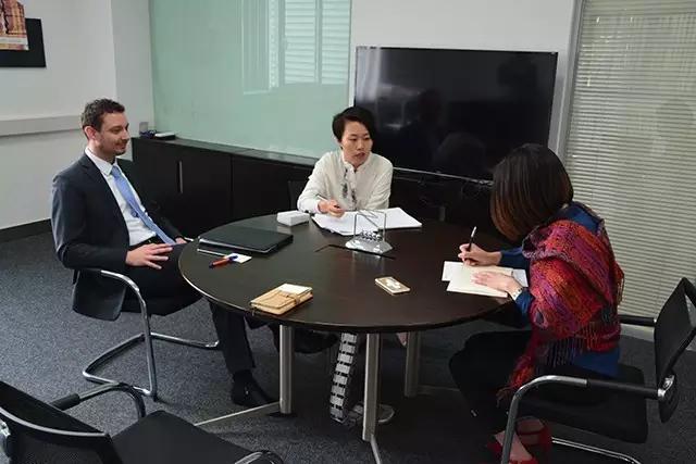 中國涂料采購網市場總監張馨元(右)走進哈沃科技