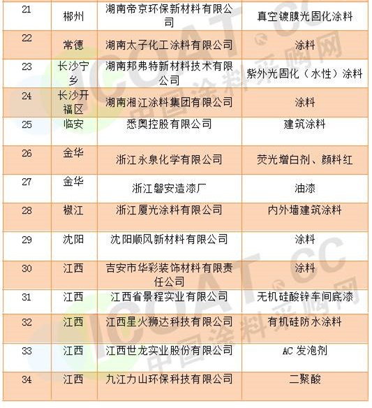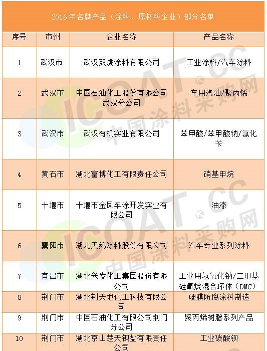 【中國涂料采購網】近日,各省市政府網站、質量技術監督局,陸續公布了2016年名牌產品(工業類)名單。其中,武漢雙虎涂料有限公司、湖北天鵝涂料股份有限公司、湖南福湘涂料化工科技有限公司、湖南湘江涂料集團有限公司、浙江廈光涂料有限公司等34家企業被評為2016年名牌產品。經中國涂料采購網整理,其部分名單公布如下。